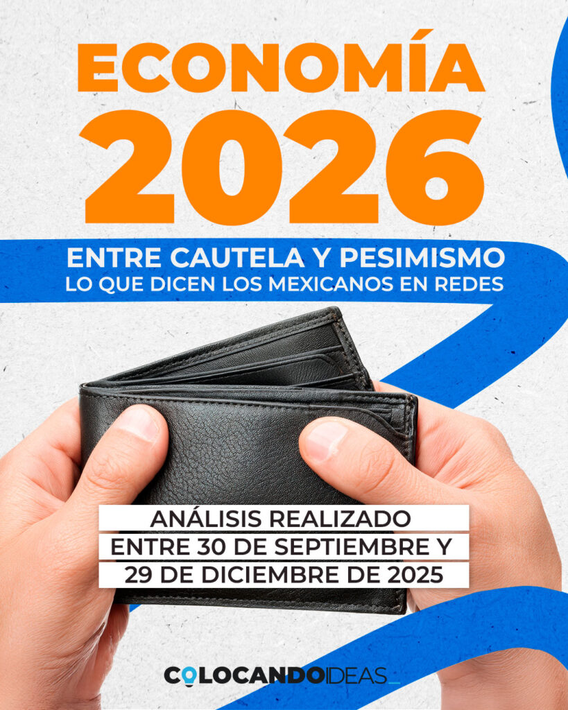 Al evaluar un total de casi 26 mil conversaciones en redes sociales entre el 30 de septiembre y el 29 de diciembre del 2025, respecto al panorama económico nacional de este 2026; la agencia de marketing Colocando Ideas halló que, prevalece un sentimiento moderado en relación con avances o mejoras en tópicos relacionados con precios, cobro de impuestos, valor del peso mexicano, inversiones y salarios.